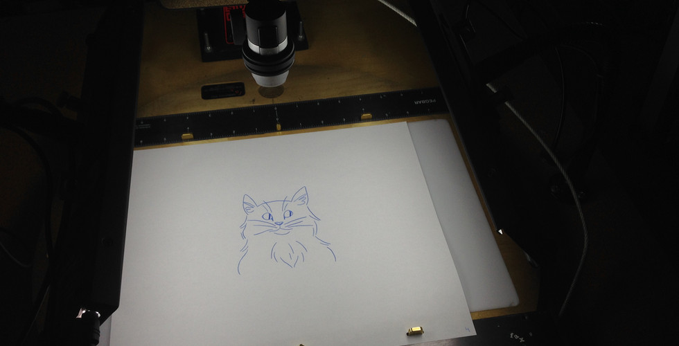 My 2D animation class was taught by Troy Gustafson, a former animator for Disney. He worked on movies such as The Lion King, Mulan, Lilo & Stitch, Pocahontas, and Brother Bear. It was amazing learning from him! On Monday, the first day of class, he taught us about the 12 principles of animation and we started designing characters and storyboards. On Tuesday, after we got our designs approved, we started animating. We had approximately 6 hours to animate using the traditional method of tracing over a light table. My original design was a cat yawning. On Thursday, with only one hour left to animate, I realized I wouldn't have enough time to close the cat's mouth. So, I figured the only plausible thing to do would be to open it even wider! I turned him into a sort of demon cat and I'm so happy with the direction it turned! I ended with a grand total of 66 individual frames, not including the title. It was Troy's idea, after he had seen it, to close the cat's mouth by playing the frames back in reverse. This was my first time animating something and I think it turned out great for a beginner! Everyone's animations were presented on a projector during the student exhibit on Friday night.